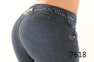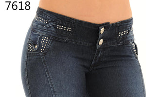 Este hermoso jean es ajustado en la parte de la bota y tiene unos rótulos elegantes con detalles. Es la prenda perfecta para mejorar tu estilo. Este jean es 100% colombiano y de la mejor calidad. Esta prenda tiene una preciosa pedrería en la parte de las trabillas y los costados de la cintura para darle un estilo muy especial.