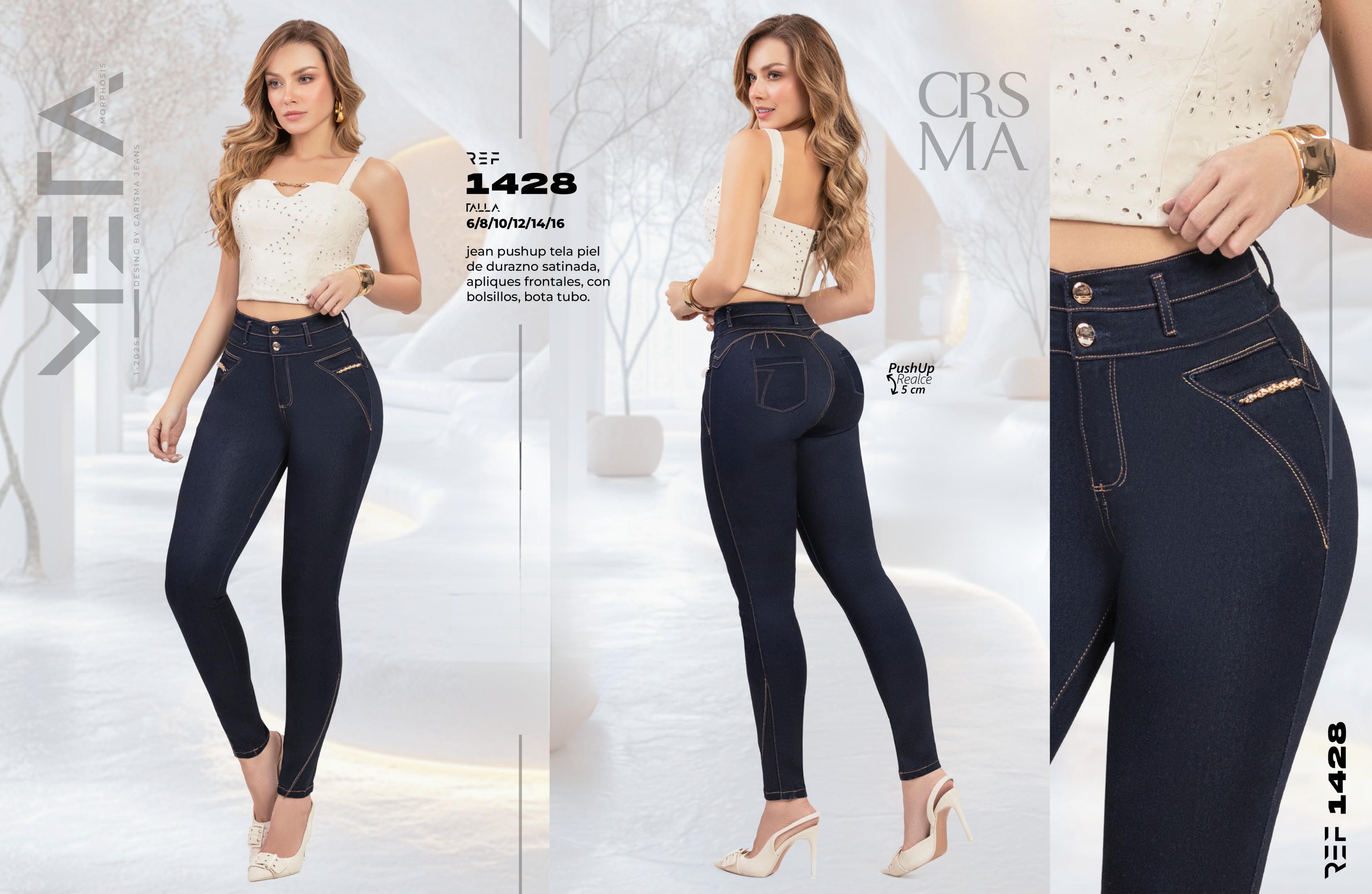 This push-up jean combines comfort and sophistication with its silhouette-enhancing design. Crafted from satin peach skin fabric , it offers a smooth and elegant finish, while its front appliqués add a distinctive touch. Its tube leg and functional pockets make it a versatile garment for any occasion.