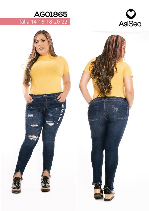 This beautiful jean 100% Colombian, has two pockets and distressed and faded wash details. Dress up with the latest fashion and the clothes we offer you from Latinmoda. It is a beautiful garment made with the best quality. Designed with open bottoms in an inverted V shape.