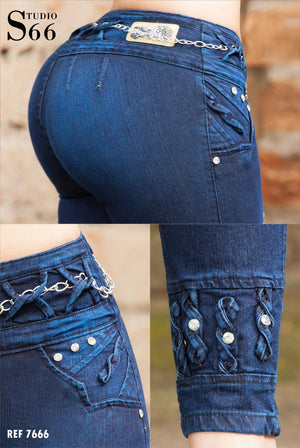 Hermoso jean fondo entero, lindo y casual 100% Colombiano. Esta prenda tiene un perfecto recogido en la parte de la bota y con bonitas perlitas en la parte de la cintura para darle una forma y estilo únicos. Luce espléndida con esta prenda de excelente calidad.