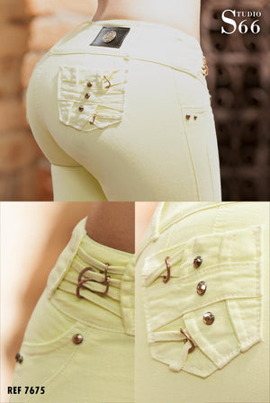 Luce impecable y hermosa con este jean con preciosos detalles en el área de la cintura que le dan un contorno perfecto. Este lindo jean es 100% colombiano y de excelente calidad. Además tiene dos bolsillos traseros que le dan un efecto de volumen a tus glúteos. Vístete siempre con las últimas tendencias que te ofrece Latinmoda.