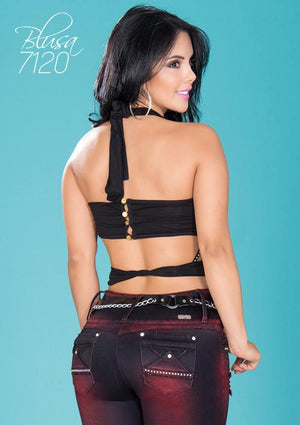 Lovely Colombian sleeveless blouse, with an amazing tied halter neck, a fabulous open back and an original butterflies print. Look always sexy and beautiful. Buy this garment designed with the best materials, quality 100% assured.