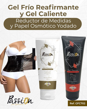 Si buscas una solución integral para el cuidado de tu piel y figura, Passion tiene la combinación perfecta para ti: el gel caliente reductor, el gel frío reafirmante, y el poder del papel osmótico yodado. Estos productos, elaborados con ingredientes naturales de origen colombiano, ofrecen resultados efectivos y visibles en poco tiempo.