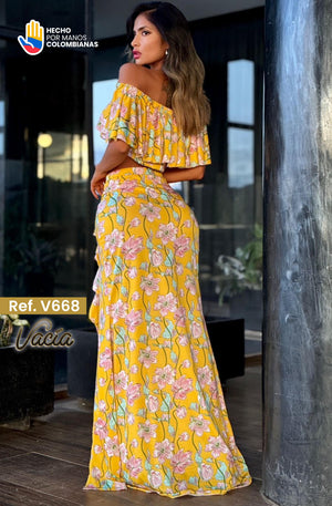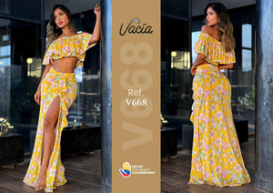 Ilumina cualquier ocasión con este deslumbrante conjunto largo de blusa y pantalón en color amarillo de la marca Vacía. Perfecto para eventos especiales y celebraciones, este conjunto combina una blusa elegante con un pantalón de corte impecable, ambos en un radiante tono amarillo que refleja alegría y energía. El diseño fluido y los detalles cuidadosamente elaborados garantizan un look sofisticado y llamativo. Con Vacía, estarás lista para brillar con estilo y confianza en cualquier evento.